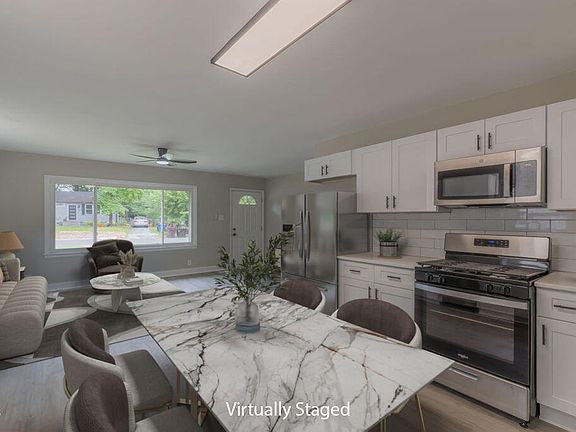 Lvp floorsQuartz countersFully fenced backyardStainless appliancesTiled bathWhite shaker cabinetryBright new kitchen