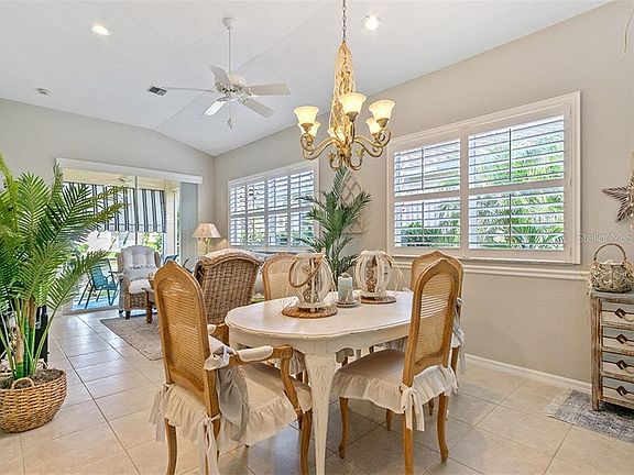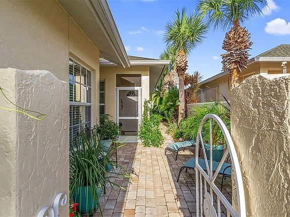 You will enjoy the spectacular lakefront & lighted water fountain views from your screened in lanai. Located directly across the street from the community pool, clubhouse, and mailboxes, in addition to being just blocks away from many stores... living has never been so convenient. Not in a flood zone, Maintenance free, and very reasonable fees in this smaller community of only 48 total villas!! You will appreciate all of the updates that this spacious villa has to offer including New HVAC in 2017 (still under warranty), updated Granite countertops, Brand New stainless appliances (with transferable 3 year warranty), plantation shutters, new paint throughout, and new laminate flooring in the Master bedroom. A brick paver, open-air, walled courtyard is an eye-pleasing entrance to the screened-in entryway to the front door. Upon entry, the bright and open living area is accentuated by the lake view backdrop. This Split floor plan is an excellent layout to give you and your guests maximum privacy.... The master bedroom takes advantage of the water views , while the guests room is closer to the front, along with their own guest bathroom. The interior laundry room with utility tub and washer/dryer set, leads out into your 2 car garage with workbench. With the several linen closets, cabinets, and walk-in closets throughout, you will not be lacking for storage. This is an excellent location with less than 4 miles to Venice beach & just minutes to Historic Venice Island with unlimited eateries, shops & year-round events!
