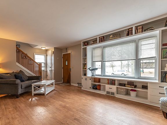 Located in the desirable Colonial Village neighborhood, across the street from Elmhurst Park, this home has many updates and great features. The spacious living room has hardwood floors, a fireplace, and large windows surrounded by custom shelving. An open concept dining area also has hardwood floors and doors to a back deck. The kitchen has been updated with high quality cabinets, and offers plenty of countertop space and nice appliances, which will stay with the home. A half bath is conveniently located by the side door entry. Upstairs are 3 nice size bedrooms and a full bathroom. The lower level has a large family room, and plenty of storage space. Additional features include plenty of natural light and great views of the park, a smart thermostat, attached shelving for organized storage, fenced in back yard, and great landscaping. Overall Great Home!