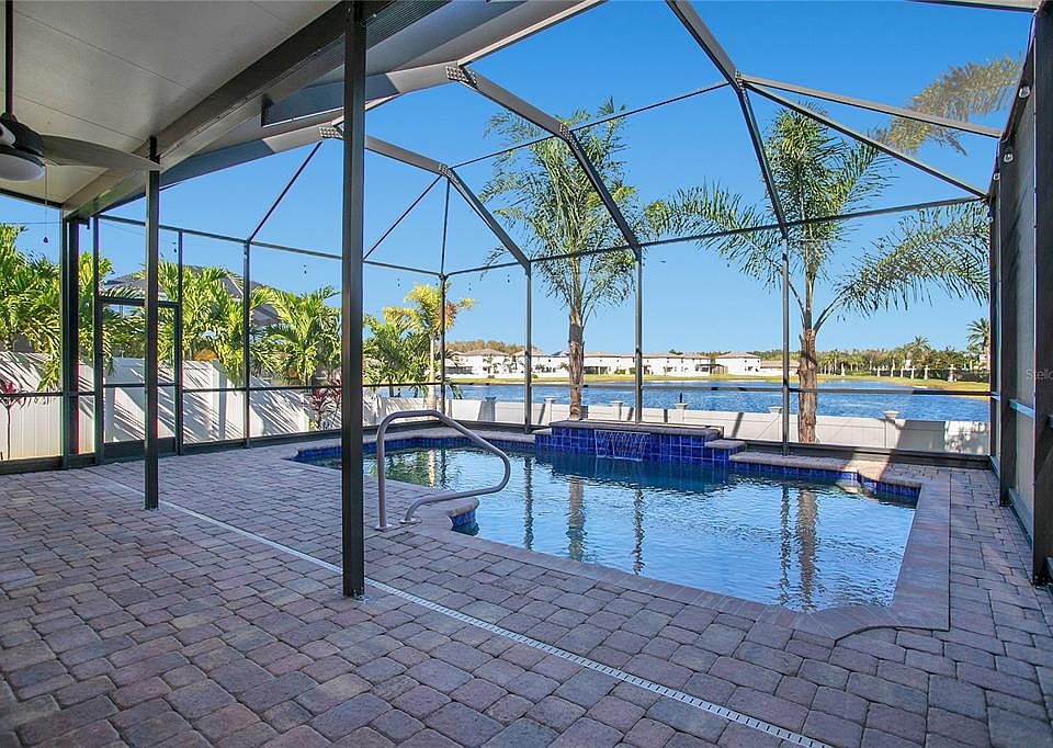 This is it! Welcome Home to this gorgeous WATERFRONT, POOL home in the gated Trinity Preserve. This showstopper is sure to impress from the moment you walk in the door. The kitchen boasts granite, stainless steel, solid wood cabinets with tons of storage, designer pendant lights and has an island that overlooks the family/dining room. Also, downstairs is a half bath and homework nook. The outdoor space is truly special, covered and screened lanai with ceiling fans. The floors have been upgraded to pavers that flow seamless around the pool that has a calming water feature with a backdrop of palm trees and the fountain from the pond. Very private and peaceful. Backyard is fully fenced and room remaining for a dog run. Upstairs leads to a giant loft area, the humungous primary suite with a walk in closet, a bathroom that you can host a party in, 2 large bedrooms, a full bath and laundry room. NEW ROOF, NEW EXTERIOR PAINT, NEW INTERIOR PAINT. Top Rated Schools, No CDD, Low HOA, Gated Community, Not in a Flood Zone <div style="padding:56.25% 0 0 0;position:relative;"><iframe src="https://my.matterport.com/show/?m=wagHrheaMPc&mls=1" frameborder="0" allow="autoplay; fullscreen" allowfullscreen style="position:absolute;top:0;left:0;width:100%;height:100%;"></iframe></div>.