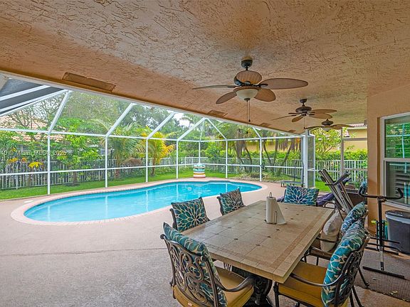 Welcome to this beautifully maintained 5-bed, 3-bath home in guard-gated Eagle Trace. Features include a triple-split floor plan, updated kitchen with granite & island, spacious primary suite with dual walk-ins and spa-like bath. Enjoy paid-off solar panels, 2022 A/C, impact windows/doors, new water heater, saltwater pool, alarm & 2012 roof. Relax in the screened pool, covered patio & fenced yard. Tax amount reflects upgrades (impact windows/doors & solar panels), which sellers will pay off at closing—taxes will be reduced. Community offers 24-hr security, tennis, basketball, pickleball & playground.