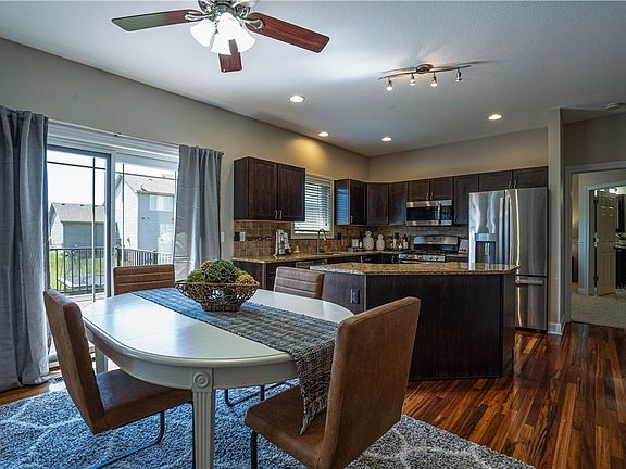 This Beaverbrooke ranch home has so much to love!  Covered entry leads across the beautiful cherry wood floors to the open kitchen, dining, living area. Modern electric fireplace with heat is framed by shiplap to highlight the area.  Kitchen has a built in wine rack, SS French door refrigerator, gas stove, and granite counters.  Spacious primary suite has double sinks, shower and bubble tub and a large walk in closet.  in the mudroom off the garage you'll find washer/dryer that stay, a great drop zone and lots of extra space for pantry closets.  The 2 secondary bedrooms and family full bath are at the opposite side of the house.   2" wood blinds on all windows.  Recently installed composite deck with metal rail overlooks the fully fenced backyard.  Downstairs there's a 3/4 bath, 4th bedroom, lots of unfinished storage and a family room with space for all the family game tables, TV/media, etc.  and lots of natural light from the daylight windows.  The oversized garage has a built in workbench on one side and loads of extra space on both sides of the car parking area.  New roof in spring 2022.