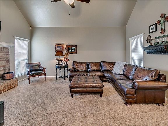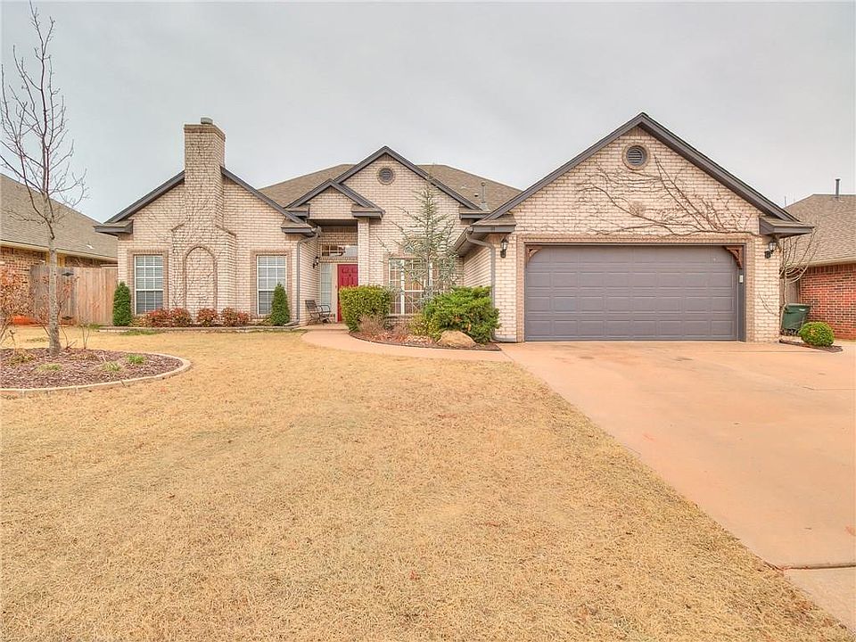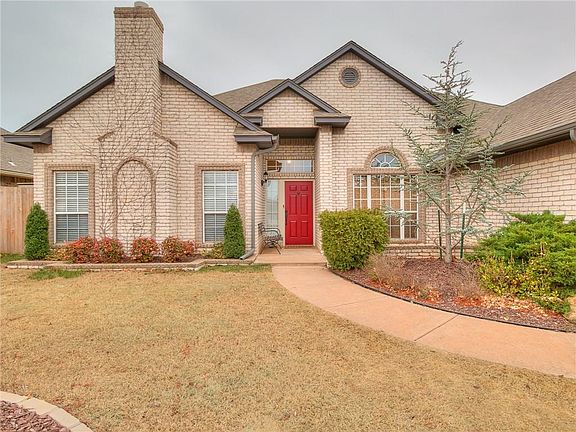 Beautiful 3 bedroom home located in Bristol Park. Upon entering you will notice the vaulted ceilings in the spacious living room. The living room has a brick fireplace and large windows welcoming in the natural light. From the living room you will enter the dining area which flows into the kitchen. The kitchen has an abundance of cabinet space, stainless steel appliances, pantry, and a brick arch over the oven. Both guest bedrooms are spacious with ceiling fans. The master bedroom is large with a vaulted ceiling and access to the backyard. The master bathroom has double vanities, a whirlpool tub, a walk in tile shower, and an Australian closet. Additional rooms include a laundry room and a study. The backyard has a covered patio and a storm shelter built in to the ground. Not only is this home wonderful, the neighborhood is as well. Bristol Park features a park and a pool for the residents use. You will not want to miss out on an opportunity to live in this gorgeous home!