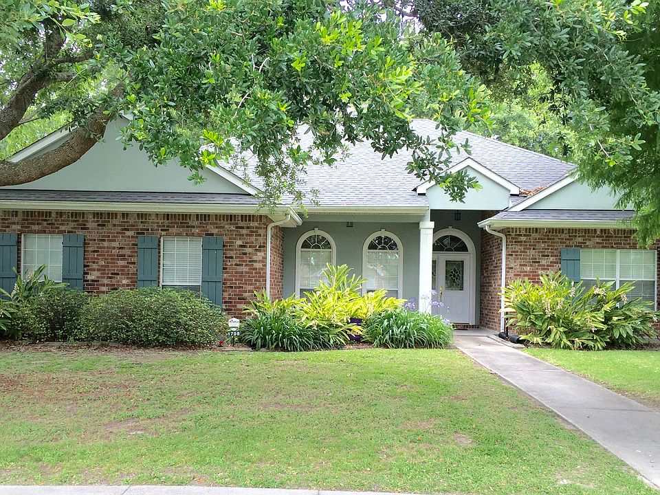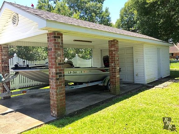 Charming 4 BR, 2 1/2 BA home with 9', 10' & 12' ceilings. Dining room with wood floors and column opening to family room with wood burning fireplace, 12' ceilings, double crown molding and recessed lighting. Kitchen with gas stove, ceramic tile counter tops and breakfast nook. Lots of storage, central vac and fresh paint. Laundry room with additional storage and pantry. Master suite offers spacious bedroom and bath with separate jacuzzi tub and shower. Additional features include security system, workable hurricane shutters, rear covered patio, double garage PLUS separate detached storage/workshop with additional 12' x 20' carport/boat storage. Property taxes is at current assessment and should be verified by Buyer.
