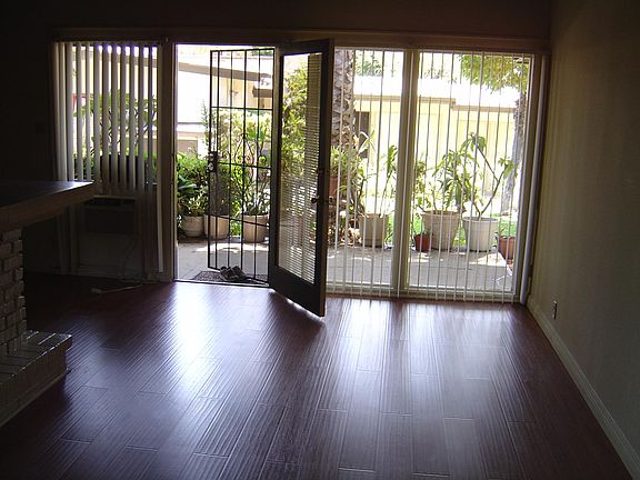 Gated property, laminate wood floor in living room, & hallway, Ceramic tiles kitchen & bath, with gas range, & refrigerator. 2 tandem parking for this unit one year