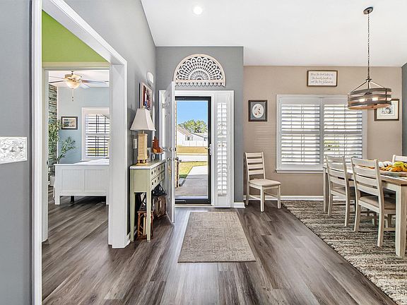 Utility sinkPeninsula seatingPlantation shuttersMature treesHanging solar lightsTankless water heaterWide plank lvp flooring