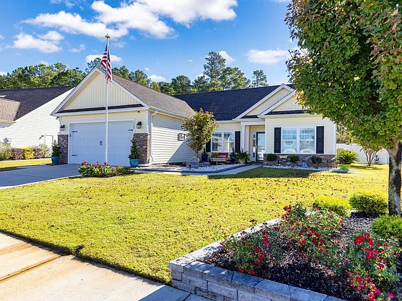 This immaculate single level home on an oversized, premium, private lot backs up to mature trees. An extended wrap around concrete patio leads to a vinyl fenced backyard with stone beds, garden/storage lockers, double gates, and hanging solar lights on the back porch for evening ambience. The yard is low maintenance and economical with a separate meter for the irrigation system. The beautiful backyard is ideal for play, pets or a future pool. Inside, airy vaulted ceilings, plantation shutters, and wide plank LVP flooring flows through the open plan. The dining area features dimmable lighting for everyday meals or dinner parties. The cook’s kitchen shines with white Shaker cabinetry, granite counters, tile backsplash, under cabinet lighting, a gas range, peninsula seating with dimmable pendants, and a pantry with custom pullout shelving. The great room opens to a flexible Carolina room for effortless entertaining. The spacious primary suite offers a tray ceiling and a bath with dual sinks, a makeup vanity, walk in shower, dual closets and a private water closet. Secondary bedrooms are comfortable and practical, and closets throughout are upgraded with motion activated lighting. The dedicated laundry/utility room provides additional storage. Garage lovers take note: pull down attic stairs, ceiling mounted storage racks, wall mounted shop vac and a utility sink keep projects and gear organized. A tidy hobby/workshop room with pegboard organization is just off the patio. Mechanical peace of mind includes a tankless water heater with instant hot water at the kitchen sink plus a whole home water filtration system. Beautifully maintained, move in ready, and set in a community of well kept homes with sidewalks and ponds, this one blends thoughtful upgrades with everyday comfort. Just a short drive to Historic Downtown Conway and convenient to the beaches, dining, entertainment, shopping and medical facilities in the Myrtle Beach area.