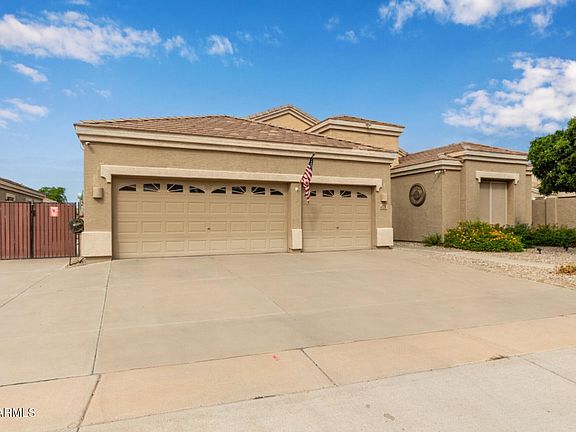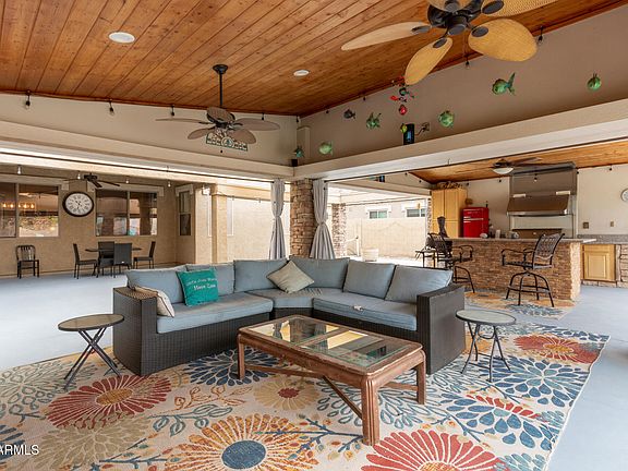Welcome to this beautiful home! This home has the Resort Style of Indoor/outdoor living at its finest! It is truly amazing and a must see! A definite one of a kind!! Be greeted by sweet curb appeal, 3-car garage, an RV gate. Stepping Inside to a large entryway that is spacious and welcoming you to the living/dining room with a beautiful view of the backyard. This home has a den/flex space, in addition to the bedrooms, elegant arched doorways, bright family room, modern light fixtures, & The large kitchen is a chef's dream featuring a large extended center island w/breakfast bar, Real wood cabinets, granite counters, SS appliances, stylish backsplash, & pantry. The Lovely Primary bedroom includes an ensuite w/dual sinks & Dual step-in shower, Large Walk in closet and private toilet room. The entertainer's paradise backyard boasts a huge Ramada w/fireplace, wood ceiling, ceiling fans, stone accents, built-in BBQ, & outdoor bar. Additional backyard highlights are covered patio, sparkling pool, grassy play area, & outdoor shower to complete the resort-style feel. This home sits on over 10k Sq Ft lot and waiting for you to call it home.