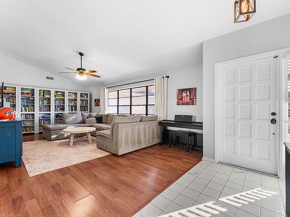 Side-load garageCedar swing playsetLarge screened lanaiFenced backyardVaulted ceilingsBright open layoutNewer roof