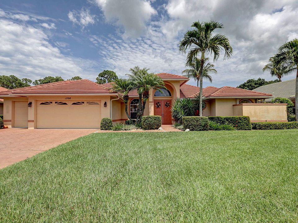 WOW, What a view! You can see amazing views of the beautiful green of the golf course from almost every room. Come see this meticulously maintained, updated 3 bedroom/2 bath home in the gated community of Country Club Estates. Upon enter this home, you will be welcomed by a spacious living/game room with vaulted ceiling and stunning views. The kitchen boasts updated 42'' antique white cabinets with gorgeous granite counter tops. Appliances are all higher end and are stainless steel. Neutral tile throughout the main living area. Split bedroom plan with pocket door that provides privacy/quiet for children or guests. Spacious Master bedroom has sliding doors to the large screened lanai which overlooks the golf course. Master has his and hers large walk in closets.