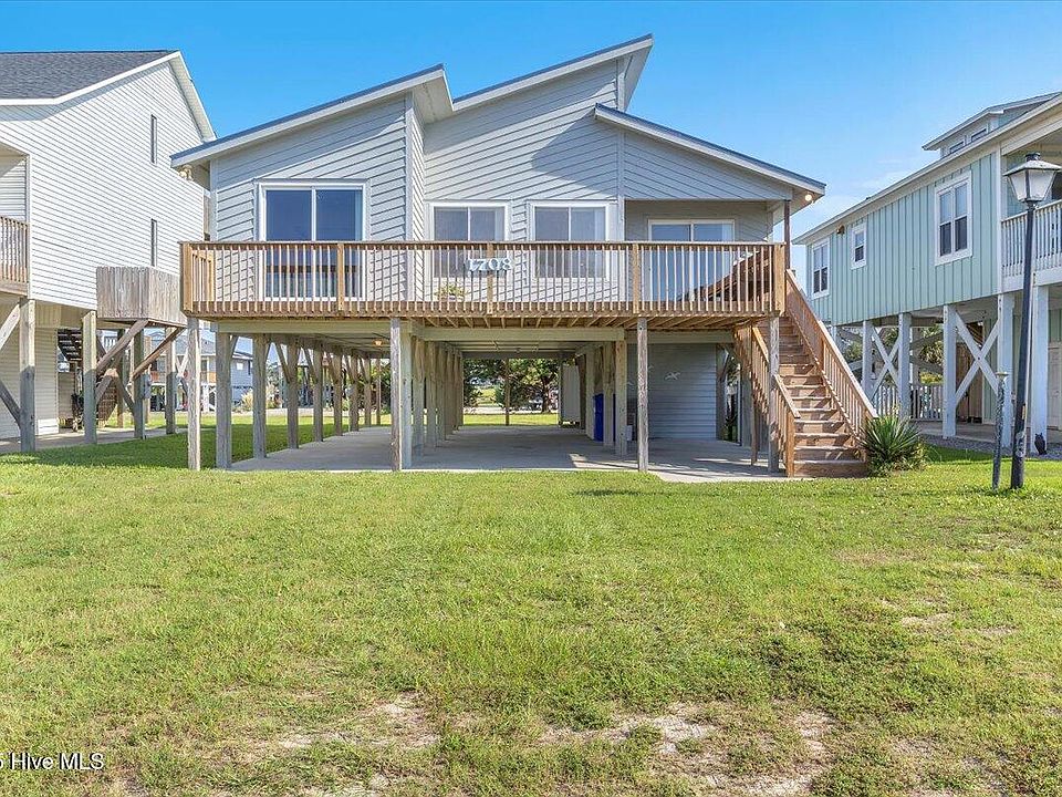 Enjoy beautiful ocean views with this delightful second row home! This amazing location offers an easy and quick access to the beach! The home owners have meticulously maintained the home with many outside updates in 2024 that include new decking on the front and back of the home, joist reinforcement, wood replacement and much more! Enjoy peace of mind owning this solidly reinforced home! An outdoor shower with hot and cold water will greet you after a day of soaking up the glorious sun and ocean waves! In addition, the home offers 4 bedrooms and 2 full baths. You will appreciate a split floor plan with each side of the home sharing access to a bathroom. Delight in the open concept kitchen and family room...making entertaining easy! It comes fully furnished! Don't wait to make the inside of the home your own...as it is a blank canvas ready to be ''painted''.