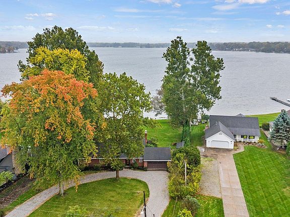 This lakeside property boasts 107 feet of prime Lakefront real estate on Winona Lake, one of the most sought-after all-sport lakes in the area. The beauty of Winona Lake is truly captivating, with its impressive 571 acres of water, breathtaking sunrises and sunsets, and an uninterrupted vista from the lake's North side to its South. The property's charm is accentuated by what is believed to be the largest Black Willow tree in the state, which serves as the home to one of the area's iconic bald eagles and graceful blue herons that visit every year. The spacious all-brick ranch-style home offers over 2,100 square feet of finished living space, adorned with original mid-century features that await your creative touch for a modern lakefront lifestyle. The home features three bedrooms, two full baths, a convenient laundry room, and a generously sized living room with expansive windows offering stunning lake views and a bonus sitting area for additional guests or formal dining space. From every main living area, including the roomy family room, you can revel in panoramic lake views and have a front row seat to the annual Independence Day Fireworks show. The adjacent kitchen and dining area can be reimagined to create an open-concept floor plan to suit your preferences. Additional living space can be enjoyed at the adjacent family room with plenty of windows, natural light and fireplace. Step outside and enjoy the lakeside patio, yard, or screened-in porch as you envision your remodel or building dream lakefront home here. Just a block away from the Winona Lake bike path that leads you to the heart of Winona, The Village. Here, you'll discover an array of delights, including fine dining, boutique shopping, farmers markets, festivals, and more for your enjoyment.