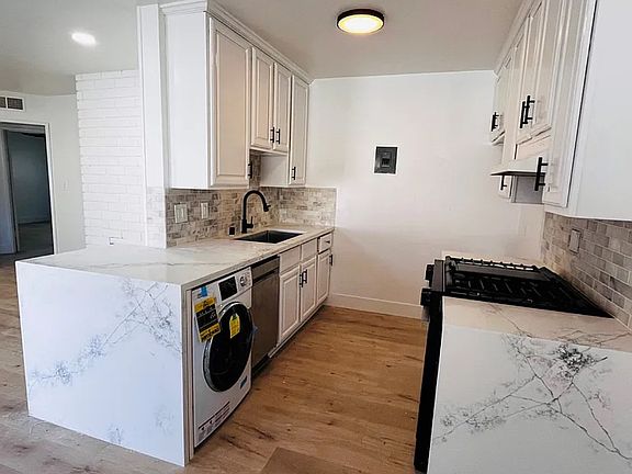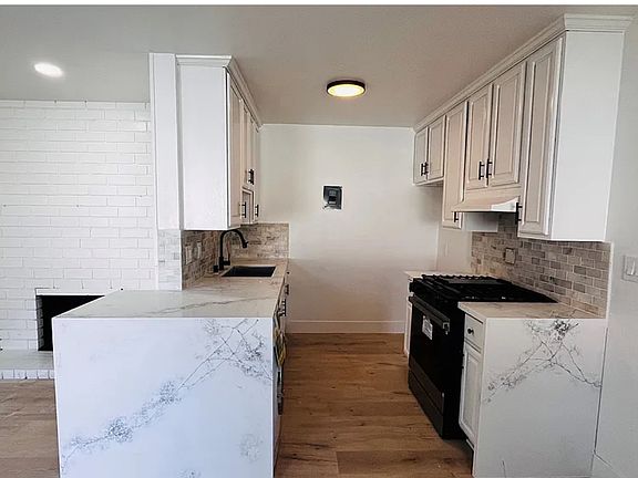 New flooringCrisp white cabinetrySleek quartz countertopsRecessed lightingQuality appliancesNew ac wall unitModern kitchen