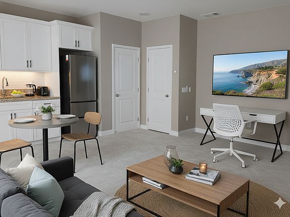 Smart kitchenette perksFull fridgeModern private bathroomSmart keyless door locksApp or remote-controlled garageRecessed lightsGranite counters