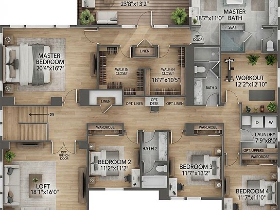 4 Beds | 3 Dual Sinks Baths and 1/2 Bath: Grand master suite with private gym and covered deck.