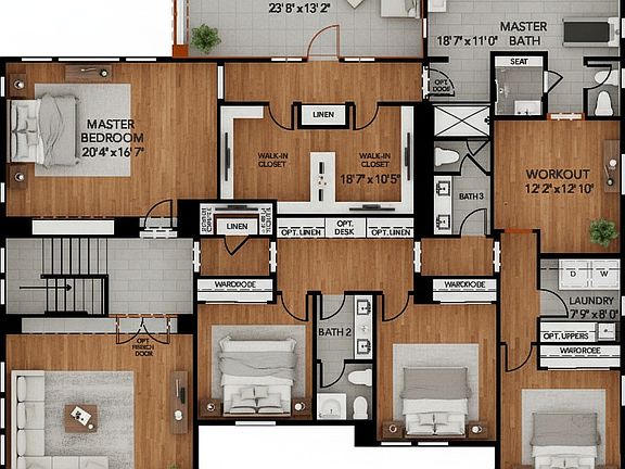 4 Bedrooms | 4 Bathrooms, including a grand master suite with private fitness room and covered deck.