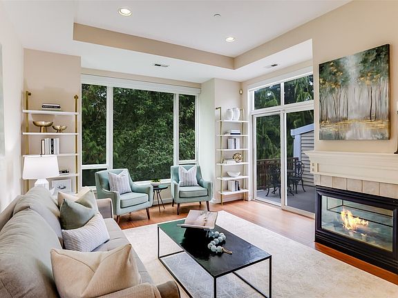 Nestled among serene park-like grounds in this impeccably maintained gated condo community, is this thoughtfully designed stunning top floor penthouse home featuring 2 bedrooms/2 bathrooms, plus home office. The spacious living room includes a cozy gas fireplace & private patio. The upscale kitchen includes white cabinetry, granite countertops & breakfast bar w/stainless appliances. The to-die-for primary suite is complete w/a gorgeous en-suite, walk in closet & private patio access as well. Conveniently located to walking trials, top-rated schools, shopping, dining & major tech hubs and I-405, this home also boasts 2 parking stalls in the gated parking garage, large storage unit, in-unit laundry, & ample guest parking. Welcome Home!