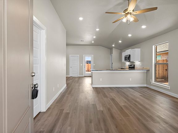 This 1,300 square foot Dutch Traditional affordable new home welcomes you with captivating features like a brick and stone design with cedar accents, dutch gables, and columns framing a quaint front porch. This 3 bedroom, 2 bathroom open concept new home is perfect for hosting friends or cooking for the family featuring a dining nook, large kitchen peninsula, and a pantry. This quality new home is complete with a two-car garage, a master walk-in closet to fit his and her wardrobes, and a backyard with a covered patio for serene West Texas evenings.