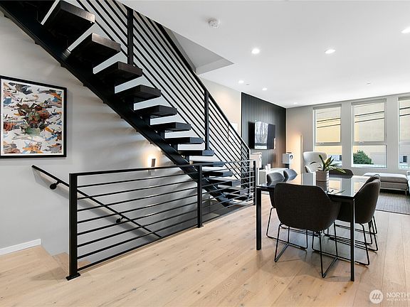 This unique & thoughtfully designed home offers modern luxury nestled within a friendly community in the heart of Capitol Hill. The attention to detail in the premium finishes including: Sleek Bellmont oak cabinetry throughout, gorgeous white oak hardwoods, high end European appliances by Bertazzoni and Liebherr, not to mention the latest in energy-efficient systems such as Mitsubishi mini-splits, Coeur d'Alene windows & the comfort of above code insulation performance is a cut above anything else you'll find out there. The parking spot is generous & in a secured garage with a dedicated EV charger. Top all of this off with a fabulous rooftop with view of Mt Rainier & close proximity to eateries & shopping & there's nothing more to want for!
