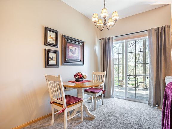 Rare Opportunity to own the main level condo! This one owner condo in MINT condition and offers the upgrades of designer paint color, window coverings and custom built-ins. An open floor plan features vaulted great room with fireplace for the winter months and sliders to a extra large covered patio for the summer months with private views year around. A maple kitchen provides generous amounts of cabinet and counter space with all the appliances included. The dining area offers space for meals with family and friends. Guest bedroom is near the full bath with the built in's including a window seat. This room can also be used as an office. Master suite holds walk-in closet and private bath. Laundry area includes the washer and dryer. Storage is available by entry door or in the private garage for all the outside tools/toys and deck furniture. Bring your furry friends. Each homeowner may have one dog, two cats and one bird under 25lbs. This ideal location is near big box shopping, restaurants, parks, schools, and Adventureland Amusement and Water Park. Put the shovel and mower away and enjoy the benefits of condominium living! Come Home to Altoona!