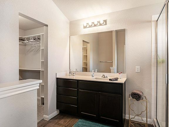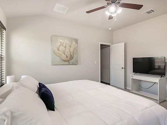 One Story in Pioneer Crossing East with private back yard and no back neighbors, perfect for families! Furnished or unfurnished. NE Austin, convenient location within minutes to many major employers like Samsung and Applied Material and just north of Mueller area. Near HWY 290, HWY 183, 130 Toll, and IH 35. Home features a foyer entrance with long hallway, vinyl plank flooring, carpet in rooms, coat closet, two guest bedrooms with walk-in closets, 1 office-or Bedroom, and full guest bathroom. Open floor plan with plenty of living space, separate dining area, kitchen with an island, stainless steel appliances, granite counter tops, tile backsplash, pantry, gas stove, and fridge included! Walk in laundry room with washer and dryer included, and a two car garage. Primary bedroom is across the house with a roomy bathroom and large walk-closet. Ceiling fans in primary bedroom and living area, and blinds in bedrooms! Pet friendly. Access to community pool.