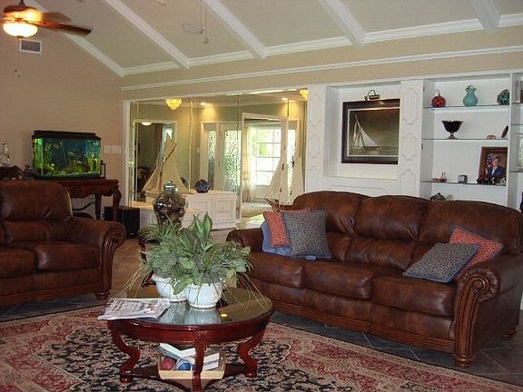 This home has almost ott many features to list!Full security system w/cameras, heated greenhouse, water well w/sprinkler system, mature pecans & landscaping, river front & private lot, HUGE deck w/covered hot tub, surround sound throughout, new Pella doors in LR, built-in cabinetry everywhere, updates galore, TONS of storage, 2 gas fireplaces, full cedar closet, 6-burner gas cooktop, Bosch double oven, Built-in refrigerator, microwave, indoor BBQ w/vent, stainless steel, granite counters throughout, custom tile showers, jetted tub, vaulted ceilings, tile & marble floors & MORE!