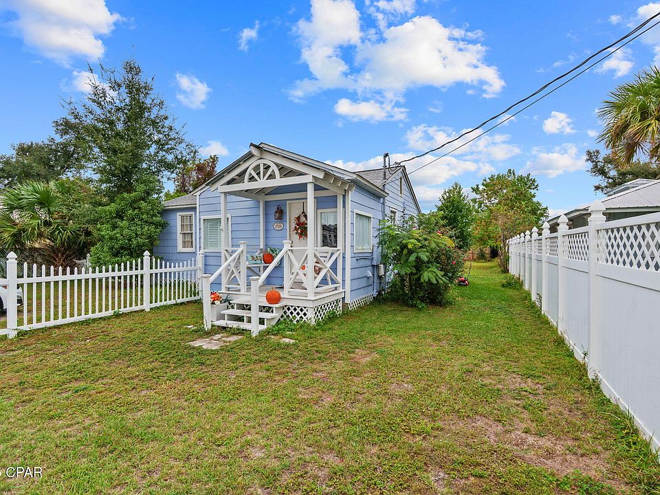 Experience classic Florida charm in this beautiful 1941 cottage, fully updated in 2019, including the roof and HVAC. Located just two blocks from Lake Huntington with open water access to St. Andrews Bay and the Gulf, this home offers the perfect balance of vintage character and modern comfort. Inside, you'll find hardwood floors, abundant natural light, a welcoming front living area, and a second living space off the updated kitchen featuring an island, stainless steel appliances, and stylish gold finishes.