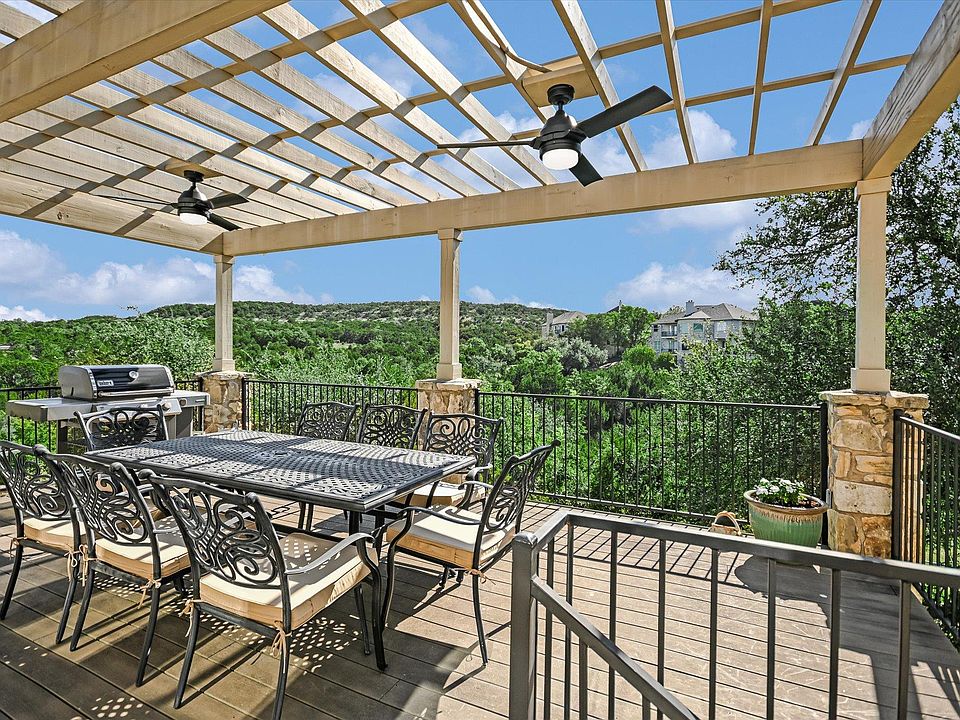 A stunning custom 2-story home that truly lives like a single story. Nestled in the sought-after Senna Hills community with access to exemplary Eanes schools, this residence offers convenient proximity to DT Austin while showcasing scenic greenbelt & hillside views. At the heart of the home, the beautifully designed main level centers around a spacious kitchen which flows seamlessly into a bright, treetop-level breakfast area & inviting sunny living room; perfect for morning coffee or casual entertaining. Gorgeous outdoor living & dining spaces, where you can host unforgettable gatherings under the stars while overlooking serene hillside setting. The primary suite is a true retreat, featuring vaulted ceilings & recently renovated bathroom with beautifully updated shower & garden tub. Custom walk-in closet offers extensive built-ins & organized storage. 2 additional bedrooms on main level thoughtfully positioned on opposite side of the home & connected by a convenient Jack-and-Jill bath. Large laundry room just steps from the bedrooms adds everyday convenience with 2nd refrigerator. Versatile downstairs living area offers endless flexibility; perfect for a media room, study, or recreation space; with direct access to backyard. 4th bedroom with adjacent full bath provides ideal accommodations for guests, teens, or a home office. Outside, enjoy multiple covered living areas including a patio with an outdoor fireplace and a 2nd covered space beneath upper deck. Fenced backyard backs directly to greenbelt canyon, offering privacy & peaceful natural backdrop. Oversized 2-car garage with front storage area & built-in overhead racks provides ample storage. The home also features an upgraded, high-efficiency HVAC system. Residents of Senna Hills enjoy exceptional amenities including tennis courts, a swimming pool, hike-and-bike trails, & parks; all just minutes from top-rated Eanes schools & shopping, dining, & entertainment of Westlake & Hill Country Galleria.