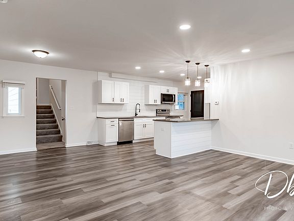 This 3 bedroom, 2.2 bath home has been 100% ELEVATED and creates a WOW FACTOR! Every inch has been re-designed, utilized and upgraded. The living space has captured top wants and needs: MAIN FLOOR master bedroom with ensuite master bathroom, open concept living space and 1st floor laundry room. The kitchen features Quartz countertops, stainless steel appliances, shiplap details, black fixtures, recessed lighting and large eat-in/dining space. 2 car garage is conveniently located through the laundry room/mud room with closet and newer washer/dryer. All 4 bathrooms have been upgraded - with unique tile finishes, glass enclosure shower with black hardware, new toilets and stylish light fixtures. Huge walk-in master closet and new LVP vinyl flooring. The upper level has 2 bedrooms and share a full bath. New carpet, trim, paint and fans. Lots of windows are brand new and some have been updated through out the last few years. The lower level has new carpet, 1/2 bath, finished ceilings with recessed lighting and lots of open space. Head outside to the HUGE fenced in yard. Brand new vinyl privacy fence encloses a perfect, usable backyard with large shed and pebble firepit area. On almost a quarter acre, you have room to run! Located in an established and sought after neighborhood. You get the best of both worlds - solid construction home with all the newest finishes and appliances! A MUST SEE!