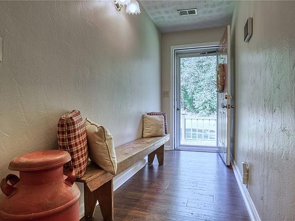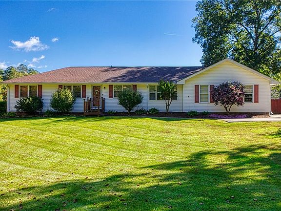 PRICE BELOW APPRAISAL!!Welcome to Paradise! Gorgeous views to private lake from back porch of this beautiful home. The home offers 4 bedrooms, 2 full bathes and many updates. New flooring throughout home to include shoe molding. Updated light fixtures in living room, owner's suite, dining room, and kitchen. Fresh interior paint through entire home, closet shelving installed in all bedrooms except one. Updated bathrooms to include vanities, light fixture and mirrors. Home is equipped with security system with 3 external cameras, door alarms, window break and Ring doorbell. Hugh living area with vaulted ceiling and wall to wall windows overlooking the back yard and lake. Breathe taking views from the screened porch area off the living area. Enjoy the day relaxing on the back porch or fishing from your personal dock. Lake is not part of this property however you have use of it and can even use small boat with trolling motor. Exterior of this home is stunning! Fenced courtyard off the rear deck gives a "park like" feel with shading, swing and tons of azaleas. Under-ground electric dog fence, peach tree, apple tree and Forsythia bushes have been added. There is a large, fenced area perfect for our four-legged friends or gardening. Two small sheds located between home and pasture to store yard tools. Oversized garage with rear door to back courtyard, work bench and tons of storage area.