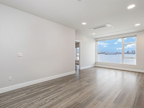 Large picture windows frame the ever-changing beauty of the waterfront, offering stunning sunset views and the twinkling city lights by night. Whether entertaining friends or enjoying a quiet evening at home, this space provides the perfect balance of sophistication and serenity.