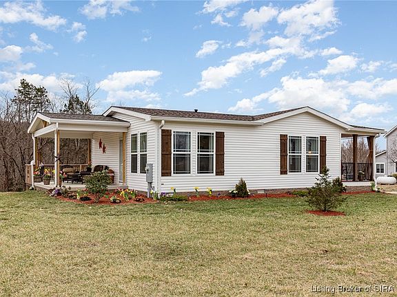 Open House SAT 4/26 from 12-2PM! Welcome to paradise! This charming Deer Valley home built in 2023 is ideally located on 2.4 picturesque acres. Beautifully designed and custom landscaped, this home boasts an open floor plan with LVT Flooring, new appliances with lifetime warranty, new washer and dryer and unique features like the double custom hand-tiled primary bathroom. Indistinguishable from a stick-built home, the Haven design features quality and efficient energy use! 8’6” ceilings provide a spacious feel. White farmhouse style baseboard, crown molding and a sliding barn door offer modern HGTV style! All exterior doors are steel, vinyl-clad. Heritage vinyl windows come with a lifetime warranty. The kitchen and bathrooms feature 100% solid wood cabinets with Maple doors and frames, Birch plywood box construction and soft-close drawers, with travertine tile custom backsplashes. A walk-in closet, oversized linen closets and pantry provide generous storage. The covered cement porch is stick-built to code and ready to finish into a sunroom or family room. The wooden deck overlooks the valley, perfect for grilling out or sunsets! Firepit is perfect for family and friends to gather and roast marshmallows! New insulated 12’ x 24’ shed offers extra storage or workspace. Septic is configured for 3 bedrooms, providing flexibility to add on in the future. This property has it all, conveniently located within half hour of Louisville. Don’t miss out on your very own country retreat!