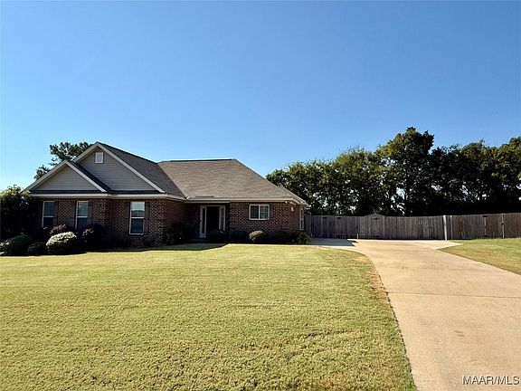 Welcome home! This beautiful 4 bedroom, 2 bath home is located on a quiet cul-de-sac street and is less than 5 miles to the interstate, shopping, dining, the YMCA & much more! Maxwell AFB and Gunter are conveniently located, both are less than 15 miles away. It is zoned for the desired Pine Level & Marbury school districts. Some enjoyable features in this home are the gas log fireplace & large picture window in the living room, the tray ceiling, garden tub and separate shower in the owners' en suite along with rich wood cabinets, granite and stainless steel appliances in the kitchen and both bathrooms. Great additions to the property in April 2024 are the ~500 sq ft covered patio and expanded parking. It's a great place to watch the game, enjoy a beverage or play with the kids...and yes, the string lights will remain. This home is well maintained. In 2025 alone the following were completed: the dishwasher replaced 6/2025, the septic tank pumped & inspected 8/2025, shower door was replaced & roof pressure washed 9/2025. The storage shed has power & the lean to provides additional storage/work space. 1709 Honeysuckle Ridge Drive is in move in condition, so contact a realtor today and start packing your boxes!