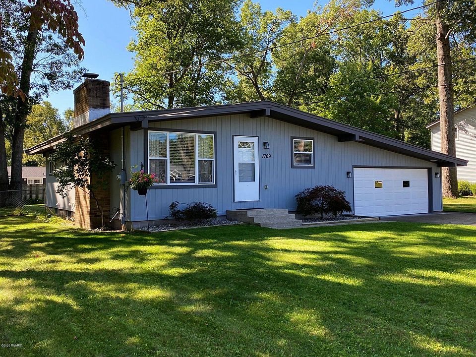 Contemporary Ranch, nestled into an established North Muskegon area subdivision of Laketon Twp. Offers master suite, 2 addnl bdrms and addnl full bath on the main level, and a family/rec room and 4th bdrm in the half finished basement. Amenities include an attached 1+ car garage with workshop, central air, fireplace, underground sprinkling, and partially covered patio, overlooking the large fenced back yard. Extensively remodeled in 2003, with updated electrical, plumbing, furnace, a/c, windows, and more. Immediate occupancy at closing.