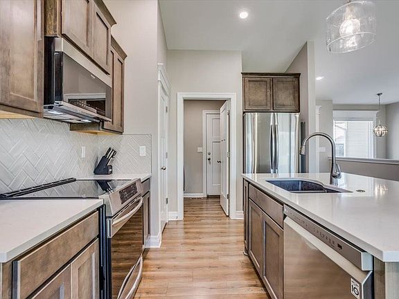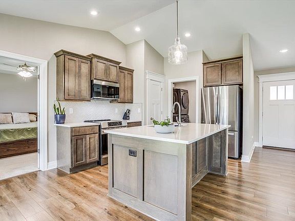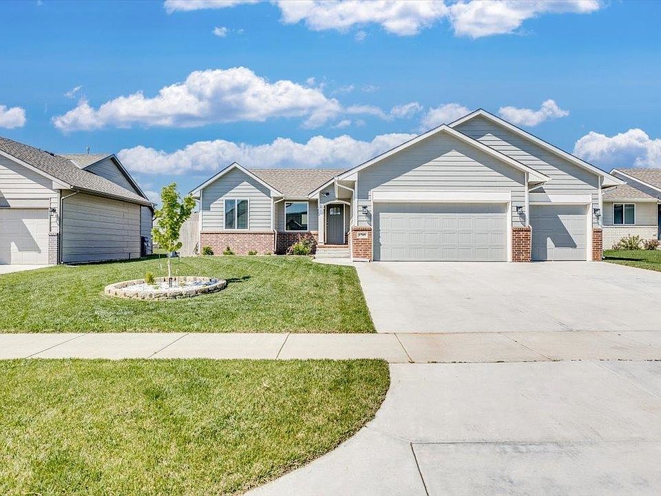 Welcome to your dream home in the highly sought-after Maize School District! As soon as you walk through the front door, you'll be greeted by tall vaulted ceilings and an open-concept living space filled with natural light. The kitchen features stunning quartz countertops, a herringbone tile backsplash, upgraded crown molding, and an oversized island that’s perfect for entertaining. The master suite offers a spacious walk-in closet and a luxurious en-suite bathroom, complete with a dual vanity sink, upgraded tile flooring, and a rain shower head. Two additional bedrooms, another full bathroom, and a convenient laundry room/drop zone round out the main floor! Downstairs, you'll find a massive family room, perfect for gatherings or cozy movie nights, along with two more bedrooms, another full bathroom, and a large storage room. Built just two years ago, this home boasts upgrades that set it apart from new construction, including a fully fenced backyard, a lush lawn with an installed sprinkler system, cased windows and upgraded fixtures. Don't miss out on this incredible home. Schedule your showing today!