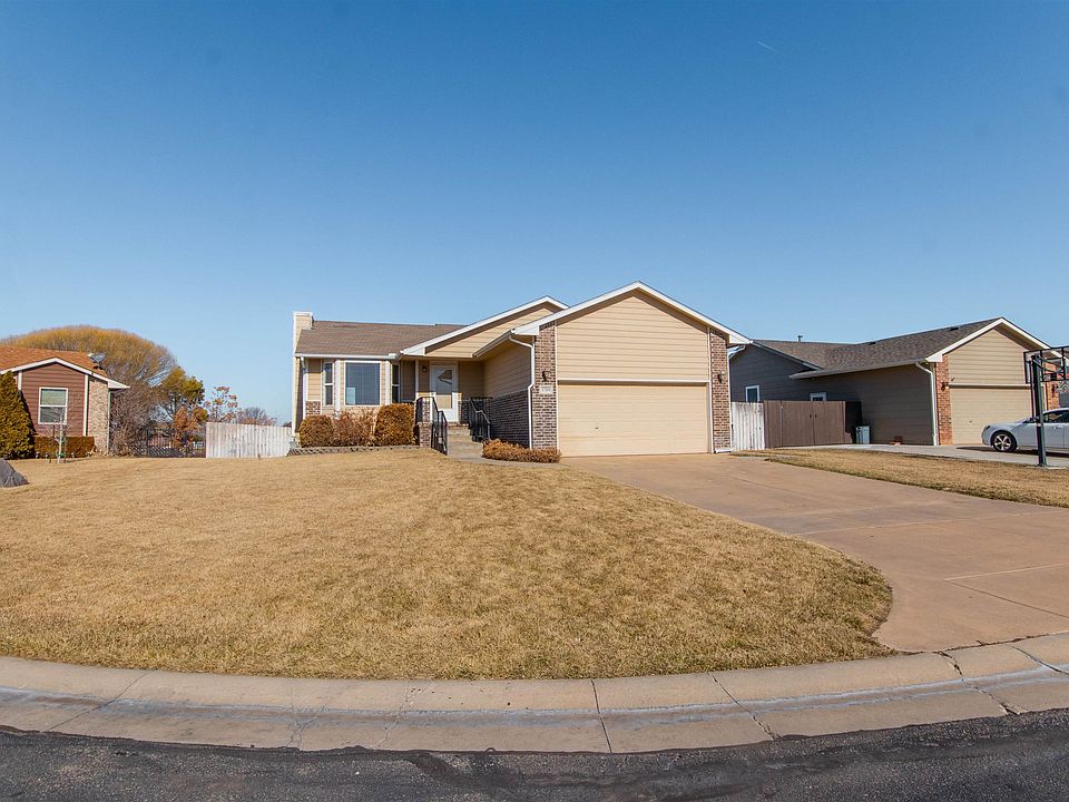 Own a piece of Goddard and live in a beautiful home by an open field and cul-de-sac! Our 4 bed, 3 bath, 2 car garage single family new listing backs up to an undeveloped, open field and located at the end of the court, making it a nice, quiet home to live in. The home has a large front yard with a long driveway for off street parking, an elevated front porch, and inviting front bay windows. Come on in and be greeted by its welcoming open floor plan! A cathedral ceiling, two bay windows, and double sliding doors by the dining area let in plenty of natural light. The L-shaped kitchen is efficiently designed with plenty of counter space and cabinetry. The breakfast island counter provides a ton of cabinet storage and informal seating for quick meals. A mudroom with built-in shelves can service the family’s laundry needs while giving convenient access to the spacious garage with workman’s shelves. The master bedroom has its own walk in closet and a master bath with a jacuzzi, enclosed shower, and two sinks. A second bedroom and a common full bath with tub complete the main level of the home. The fully-finished basement presents a spacious lounge for family entertainment. The space can be converted into a game room, home theater, or personal gym. One end of the room features a wet bar for when you entertain your friends with drinks on a leisurely evening. Two more bedrooms with built-in closets share a common full bath with tub. The utility room is tucked away in a corner with space for additional storage. The sloping backyard has a full privacy fence and has potential to extend your living space outdoors! Enjoy your view from the elevated rear deck via the glass doors coming from the main level dining room, or relax in the shade underneath in the cozy patio. Keep your greenery lush using the multiple zone irrigation sprinklers from a well in the backyard. Live in a peaceful community within minutes to Goddard’s schools and Goddard’s commercial center by Route 400. Come and visit this move-in ready home and see if it offers what your family needs! Call today to schedule a private showing.