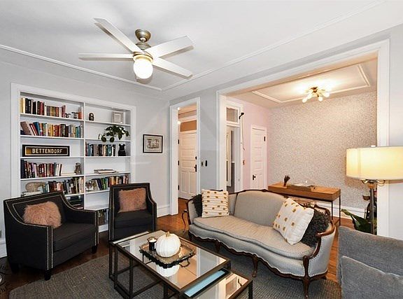 - Interior Property Features: Hardwood Floors, Laundry Hook-Up in Unit, 1st Floor Laundry, Storage, 1st Floor Full Bath, Walk-In Closet(s), Built-in Features, Some Window Treatmnt, Historic/Period Mlwk, Bookcases, 10' Ceiling