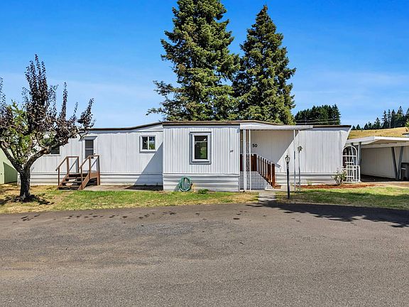This well-maintained 12' x 59' (approximately 708 sq. ft.) home offers 2 bedrooms and 1 bathroom in the desirable Hazel Dell Manufactured Home Community, a Senior Community (ages 55 and up) in Vancouver, WA. This cozy single-wide features an open floor plan that creates a spacious feel, with a large living room and an oversized kitchen that can easily accommodate a washer and dryer if desired. Enjoy peaceful mornings or relaxing evenings on your private back deck, which overlooks Heritage Farms and provides a quiet, country-like atmosphere right in the city. Recent updates include fresh interior paint, new carpet throughout, updated bathroom flooring, new faucets in both the kitchen and bathroom, new windows for improved energy efficiency, and new kitchen countertops with a convection oven. Additional storage is available in the carport. Residents of Hazel Dell MHC enjoy access to community amenities such as a clubhouse with a full kitchen and billiards room, a sports court with bocce ball, corn hole, and horseshoes, picnic and lounge areas, and a dog park. The on-site laundry room is conveniently located just steps away from the home. Located close to shopping, dining, I-5, and public transit, this home offers the perfect blend of comfort, convenience, and community in a peaceful 55+ setting.
