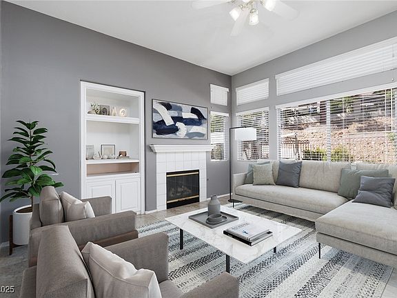 **ENTIRE INSIDE OF HOME NEW PAINTING DONE! (AUGUST 2025) LANDSCAPING REAR YARD NEW !--GRAND RE-OPENING!-RARE OPPORTUNITY in the Heart of Summerlin –GATED One-Story Community-89144-Discover this former model home perfectly situated on a premium lot in one of Summerlin’s most sought-after one-story, gated neighborhoods. This former model home backs directly to the lush greenbelt and park—no rear neighbors, just serene views. Featuring 2 bedrooms plus a versatile den/3rd bedroom with French doors-(No Closet)—ideal for a home office, TV room, or guest space. The kitchen offers granite countertops, a cozy breakfast nook and breakfast bar.Upgrades include:Custom tiled showers in both bathrooms ,Central vacuum-All appliances included.Just steps away from the community pool, spa, and park.This model is rarely available, especially in such a prime location! Enjoy unbeatable access to top-rated schools, parks, Downtown Summerlin, ( 3rd "bedroom" has no closet/Could be a Den)--GRAND RE-OPENING!!