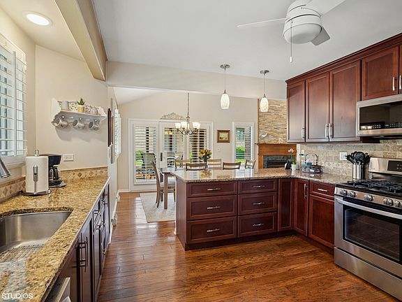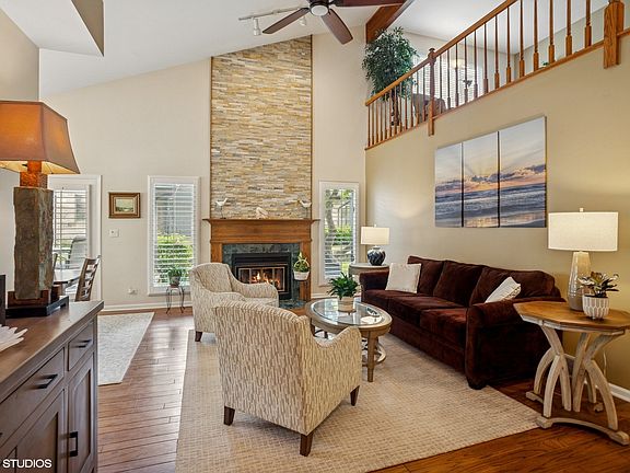 Don't miss your opportunity to own this wonderful and spacious end unit townhome showcasing the best of both worlds! Ranch style living with so many updates! Plus, a second 2nd floor featuring a large loft area, a 2nd primary private bedroom for family or guests with a large walk-in closet. Need more space? There's a full finished basement, complete with family, game area, wet bar, wine storage area, half bath and spacious utility room equipped with a sink, storage and cabinets. Enjoy the outdoors and relax in the inviting custom 3 seasons room or enjoy morning coffee on your private patio off the primary bedroom bath en-suite. Some key updates include a new roof 2024, custom kitchen with marble counters and stainless steel appliances, 3 seasons room, primary bathroom, garage floor seal coated, custom wood blinds water heater, custom fireplace and nest thermostat. This home is in a desirable area within top ranked school districts. A convenient location close to major shopping, restaurants, parks, golfing, bike trails and major expressways. A great place to call home!