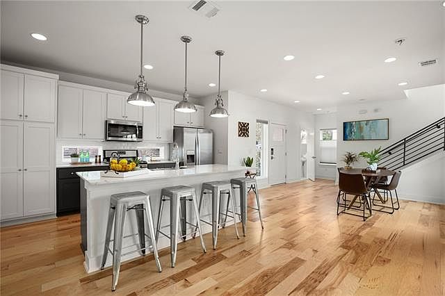 Location! Location! 2017 MX3 farmhouse designed condo with all of the bells and whistles. 3/2.5, approx 1,899 sqft. 3rd bedroom is professionally converted attic space. Open floor plan, hickory wood floors, stainless-steel appliances, Kichler lighting, silestone counters. Master with over-sized shower and walk-in closet. Minutes to UT campus and downtown. Walking distance to Bennu Coffee, Sour Duck Market, Juiceland and so much more! Fenced in xeriscaped front yard with lime and peach tree. No HOA Fees.