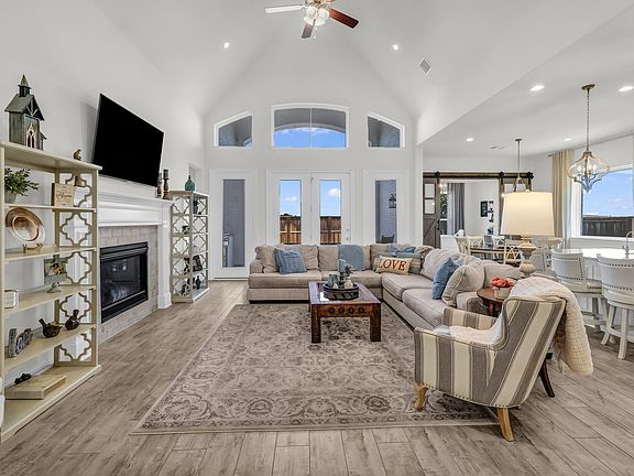 This modern farmhouse is a true gem, designed for comfort, connection, and everyday luxury. Step inside and you’ll find an inviting open layout featuring porcelain tile floors, a welcoming family room with gas fireplace, and a gourmet kitchen that makes entertaining a joy. The oversized walk-in pantry—nearly 14 feet long—is a dream for any home chef, while the spacious breakfast nook opens to a pair of custom barn doors leading to a beautifully designed his-and-her office. The primary suite offers a spa-inspired bath with jetted tub, walk-in shower, and two generous closets. A private guest suite and full bath on the main level provide comfort for visitors, and upstairs, the media room and flexible spaces offer room for everyone to gather or unwind. Step outside to an extended covered patio with outdoor kitchen—perfect for evening meals or quiet mornings under the Texas sky. Even the laundry and garage spaces were thoughtfully designed with custom cabinetry and plenty of storage. Located in the award-winning Walsh Ranch community, residents enjoy resort-style pools, a 10,000-sq-ft fitness center, parks, trails, a neighborhood market, and Aledo ISD schools. Every detail in this home reflects quality, care, and the joy of living well.