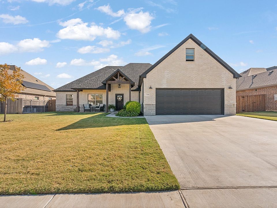 Welcome to 1709 Sudbury Dr in the desirable Belle Meadows community in Cleburne, TX! This neighborhood is close to Gerard Elementary school and Smith Intermediate school along with the lake and golf course! This beautifully maintained one-owner home, built by Raintree Homes, offers the perfect blend of comfort, style, and functionality. Featuring 4 spacious bedrooms, 2.5 bathrooms, and an inviting open-concept layout, this property is designed to meet the needs of modern Texas living. Step inside to find luxury vinyl plank flooring throughout the main living areas, complemented by a cozy gas log fireplace, ideal for those chilly Texas days. The split-bedroom floorplan provides privacy, with secondary bedrooms finished in plush carpet and the primary suite offering LVP for durability and style. The primary bathroom boasts dual vanities, a relaxing soaking tub, a walk-in shower, and a generous walk-in closet. The kitchen is a standout with granite countertops, stainless steel appliances, and a layout that flows seamlessly into the dining and living areas. Upstairs, a spacious game room offers the perfect flex space for entertainment, hobbies, or a kids’ retreat. Outside, enjoy year-round gatherings on the extended back patio, overlooking a serene greenspace with no rear neighbors—an ideal backdrop for entertaining or watching the kids play. A new CLASS 4 roof - hello insurance discount- and soon-to-be-installed new gutters add peace of mind, while the oversized garage provides ample storage and workspace. This Belle Meadows gem truly has it all—comfort, privacy, and thoughtful upgrades throughout. Don’t miss your chance to call 1709 Sudbury Dr home!