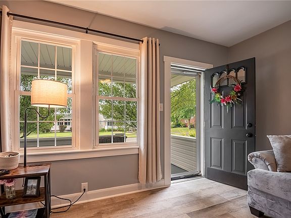 Welcome to this meticulously maintained 2-bedroom, 1.5-bathroom home! Step inside to find a freshly painted main floor with new flooring, creating a modern and inviting atmosphere. The kitchen comes equipped with a complete appliance package! A convenient half bath is located off the kitchen. Upstairs, you'll discover a full bathroom and two generously sized bedrooms with closet space galore. Additionally, the basement includes an extra room currently used as a third bedroom. This home boasts replacement windows and a roof that’s approximately 9 years old, ensuring peace of mind. Outside, you'll find a detached garage/shed for added storage and convenience. This home is ready to welcome you!