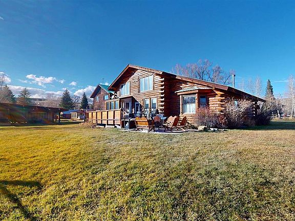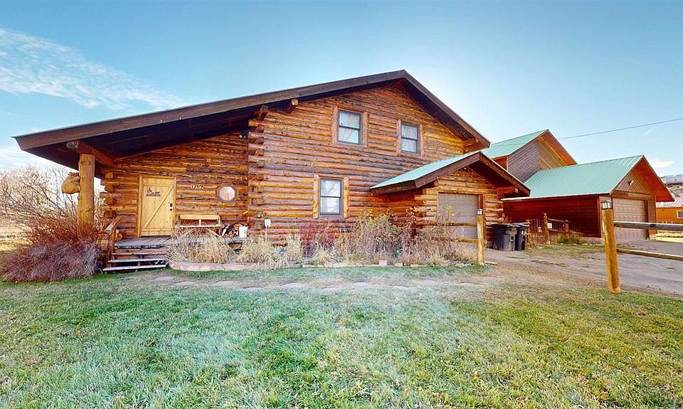 Truly a rare opportunity to own a spacious log home with acreage inside the city limits of Gunnison! This spacious one-of-a-kind property sits on 1.55 acres and features a custom-built log home along with a separate large 1,125 sq ft garage/workshop topped by a 750 sq ft, 2-bedroom apartment (ADU), perfect for guests, multi-generational living, or rental income. The main home offers 2,899 sq ft filled with natural light, vaulted ceilings, custom log detail, and the inviting glow of a wood-burning fireplace. Enjoy in-floor radiant heat throughout, supported by a new boiler installed in 2021, and newer stainless steel appliances plus a brand-new washer and dryer. The upstairs master suite showcases picturesque views, generous closet space, and an en suite bathroom, while the additional upstairs bathroom includes dual sinks and plenty of room for guests. The main floor bedroom would also make an excellent office and the main floor bathroom features an updated steam shower. Outside and on the property includes a private pond, a small historic 1800s cabin, and expansive grass meadow, creating the feeling of country living right in town. There’s ample room for vehicles, toys, or even horse grazing, with an automatic sprinkler system, abundant wildlife, and rare views within the city limits. Conveniently located just a short walk to the Gunnison River, an easy bike ride to Main Street, and a quick drive to Blue Mesa Reservoir or Crested Butte, this property blends privacy, recreation, and accessibility. With no HOA and a proven short-term rental (Airbnb/VRBO) plus long-term tenant option, it appeals to both lifestyle buyers and investors alike. Option to purchase fully furnished.