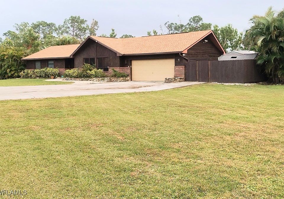 There is a rough Man Cave Garage with full bathroom two overhead bay doors,, electric and water. This property has so much potential.. make it your own..looking for country living 5 min to Cape Coral, Ft Myers or Punta Gorda...everything your looking for. ??