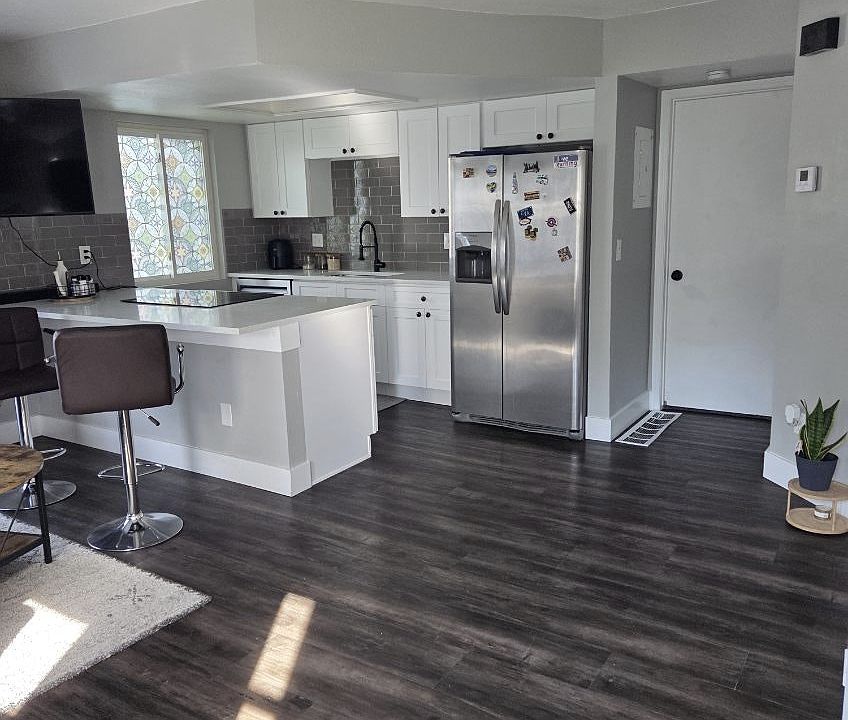 Step inside to discover a welcoming living area that seamlessly flows into the kitchen, creating an open and inviting atmosphere. The kitchen is equipped with essential appliances and ample cabinet space, making meal preparation a breeze. The bedroom offers a peaceful retreat, complete with a generous closet for all your storage needs.