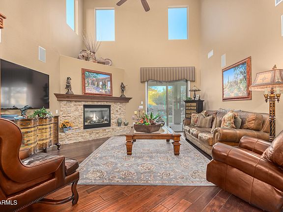Welcome home to your South Western sanctuary located in the coveted master-planned community of Windgate Ranch! Step inside where you will be instantly greeted by warm earth tone colors and elegant wood floors. The gourmet kitchen features upgraded granite counters and stainless steel appliances. An open flow concept extends into the great room with soaring 20 ft ceilings. Enjoy family meals in the breakfast nook or welcome guests and host in the formal dining area. The split floor plan features a spacious primary bedroom on the first level, giving the owners plenty of room and convenience. A large loft, 2 additional bedrooms, and a work space provide the rest of the family an abundance of space upstairs! Take in the incredible views of the McDowell Mountains from a large corner lot. Windgate Ranch amenities include multiple parks, pools, tennis and pickleball courts, clubhouse, and much more. Convenient access to Scottsdale's best shopping, dining, and entertainment. Come see this one before it's too late!