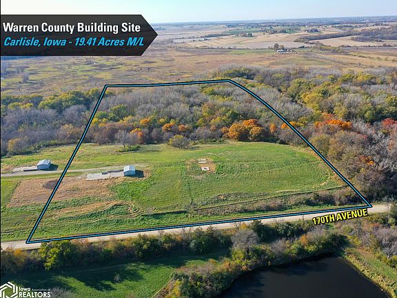 Presenting 79.74 acres m/l located just south of Carlisle, Iowa. This property offers four exceptional building sites featuring multiple outbuildings and surrounded by century-old hardwood trees. Situated near both the Middle River and the Des Moines River, the area provides abundant recreational opportunities. Conveniently positioned within the highly desirable Carlisle Community School District, the property is just minutes from Highway 5, 15 minutes from the Des Moines metro, and 20 minutes from West Des Moines. Tract 1: 19.41 surveyed acres m/l Tract 2: 21.30 surveyed acres m/l Tract 3: 16.09 surveyed acres m/l Tract 4: 22.94 surveyed acres m/l There are no cropland acres on these tracts. Rural water is available through Warren Water District, with a water study indicating that four meters—one for each site—should be permissible. Electricity is provided by MidAmerican Energy along the west side of 170th Avenue. Buyers are encouraged to confirm requirements and costs. See individual tracts for additional information. This is a unique opportunity to own land surrounded by the rolling hills of the rural countryside and mature hardwood trees. This property offers rare seclusion and tranquility while being just 15–20 minutes from all major Des Moines metro communities. Contact the listing agent prior to walking the property.