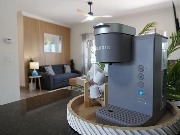 Spacious 2-bedroom, 2-bath villas feature open-concept layouts, fully equipped kitchens, and thoughtfully designed bathrooms with custom vanities. Large windows fill each home with natural light, while private outdoor spaces invite relaxation. Handcrafted hammocks from Thailand, set on the back patio, create the perfect retreat for lazy afternoons or sunset evenings.